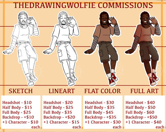 I'm currently a full-time college student, so I may or may not have the time to work on a commission! Feel free to text me on any social media to ask about my availability :]